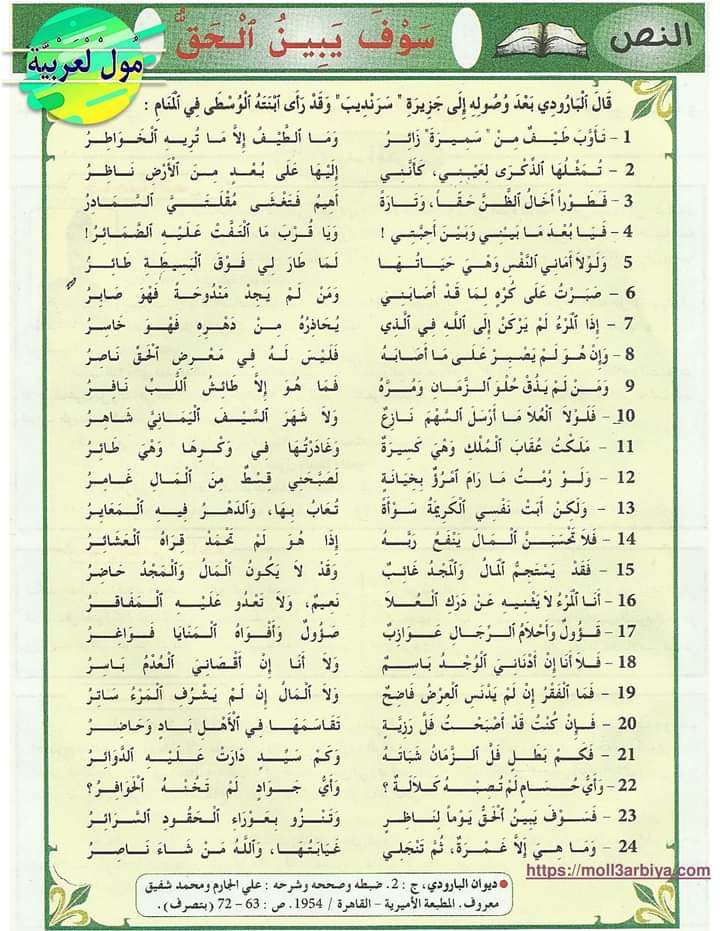 تحليل قصيدة “سوف يبين الحق” ل”محمود سامي البارودي”