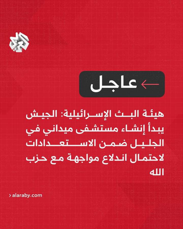 عاجل | هيئة البث الإسرائيلية: الجيش يبدأ إنشاء مستشفى ميداني في الجليل ضمن الاستعدادات لاحتمال اندلاع مواجهة مع حزب الله