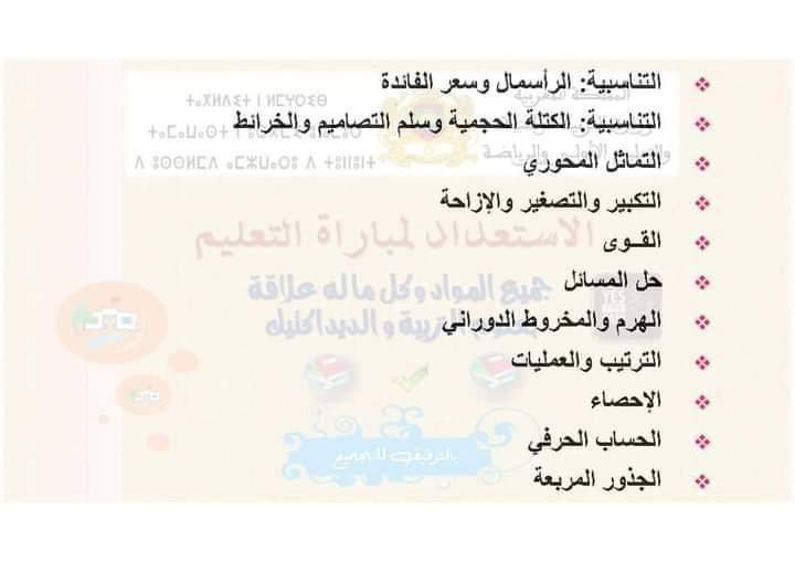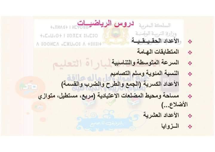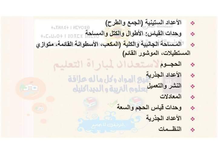 أهم دروس مادة الرياضيات التي وجب الاطلاع عليها استعدادا لمباراة التعليم الإبتدائي زائد الاطلاع على توصيف العام الماضي