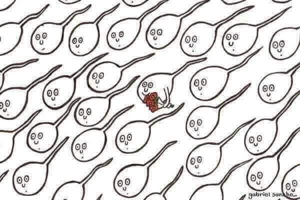 كمية السائل المنوي التي يطلقها الرجل تحتوي على ٢٠٠ مليون حيواناً منوياً.لذلك، ووفقًا للمنطق إذا وجدت هذه الكمية من الحيوانات المنوية مكانًا في الرحم، فسيتم ولادة ٢٠٠ مليون طفل !!٢٠٠ مليون من الحيوانات المنوية، تنطلق بجنون نحو رحم الأم، يتبقى منهم ٥٠ حيواناً منوياً فقط، والباقي يموت في الطريق من الإرهاق أو الهزيمة ..في النهاية من بين كل هؤلاء يتمكن حيوان منوي وحيد من تلقيح البويضة بأمر من الله عز وجلهذا الحيوان المنوي المحظوظ هو أنت بشحمك ولحمك هل فكرت في هذه الحرب العظيمة ؟!عندما ركضت “لم تكن لديك عيون أو أيدٍ أو أقدام أو رأس، لكنك فزت …