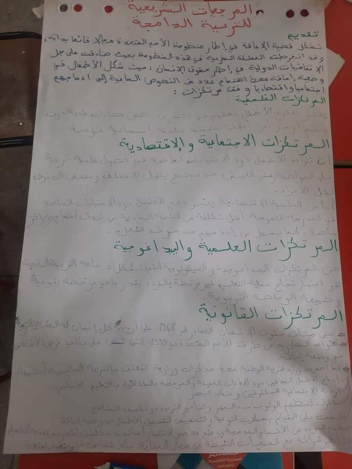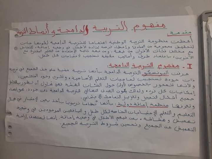 تعرفها منظمة إعاقة دولية بأنها تعني نظام تربوي يأخد بعين الاعتبار في مجال التعليم والتعلم الاحتياجات الخاصة لكل الاطفال واليافعين الموجدون في وضعية تهميش و هشاشة بمن فيهم الاطفال في وضعية إعاقة.إنها تستهدف إزاحة التهميش عن الجميع وتحسين شروط التربية للجميع .