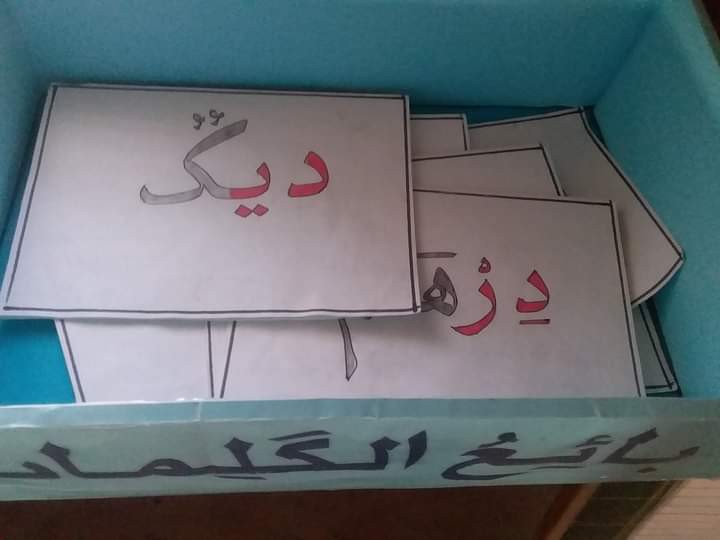 موازاة مع ذلك يقوم بتوزيع البطاقات على زملائه وبعد ذلك يقوم المتعلمون فرادى وبالتناوب الى السبورة لقراءة البطاقات والقيام ببعض الانشطة القرائية(تجزىء الكلمة الى مقاطع عن طريق التصفيق تحديد تموضع الحرف…اذا كانت مقاطع مطالبته بتركيبها في كلمة….)