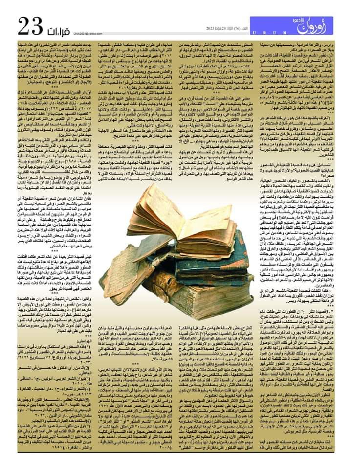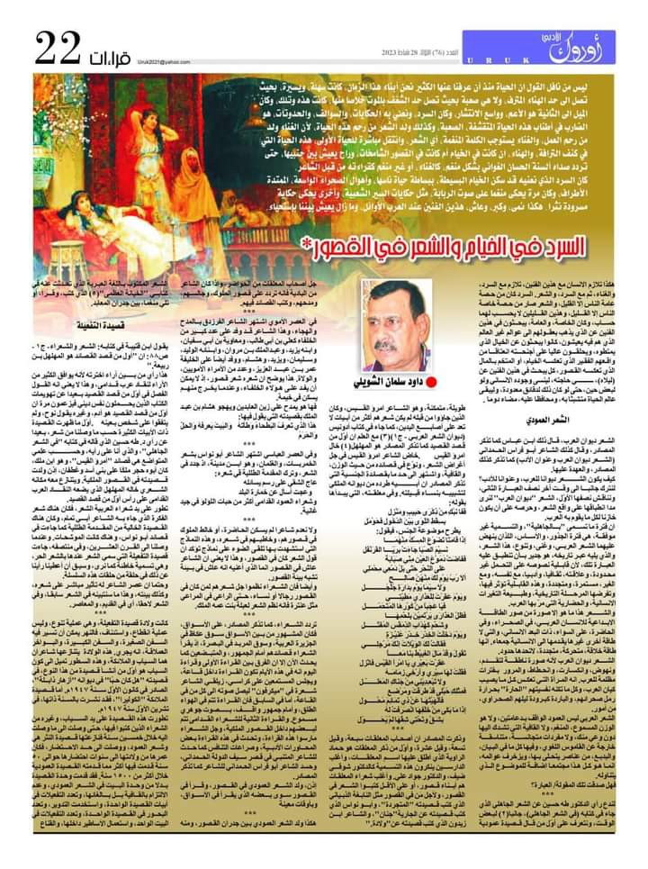 (1) هذه السطور هي استكمال بما ورد في دراستنا (السرد في الخيام والشعر في القصور) المنشورة في ملحق جريدة أوروك ع/ 76 بتاريخ 21 / 2/ 2023.