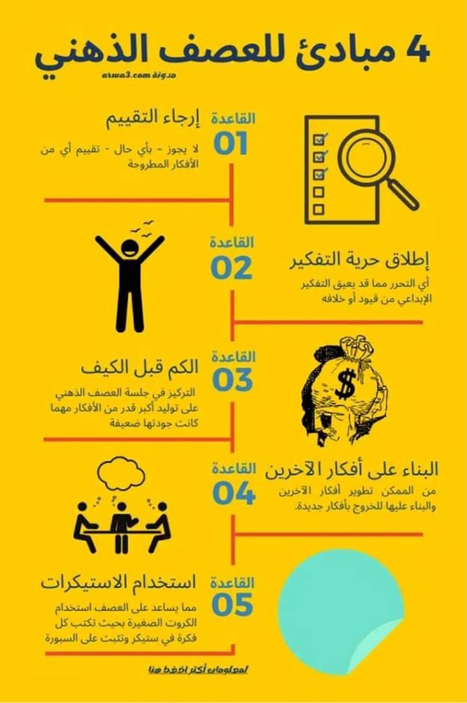 2-العصف الذهني عملية بسيطة : لأنه لا توجد قواعد خاصة تقيد إنتاج الفكرة ولا يوجد أي نوع من النقد أو التقييم .