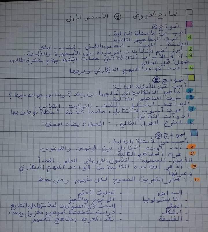 فرض الفلسفة الأول : خاص بتلاميذ الجذع المشترك